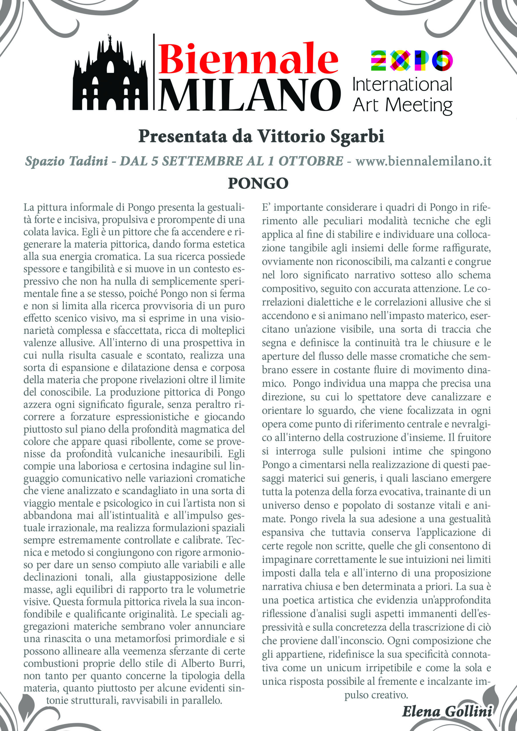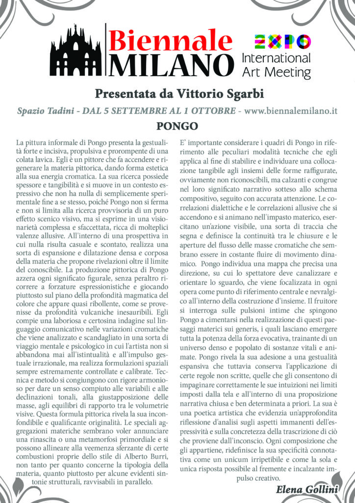 “Biennale Milano” by Vittorio Sgarbi, Spazio tadini art gallery, Milan 2015